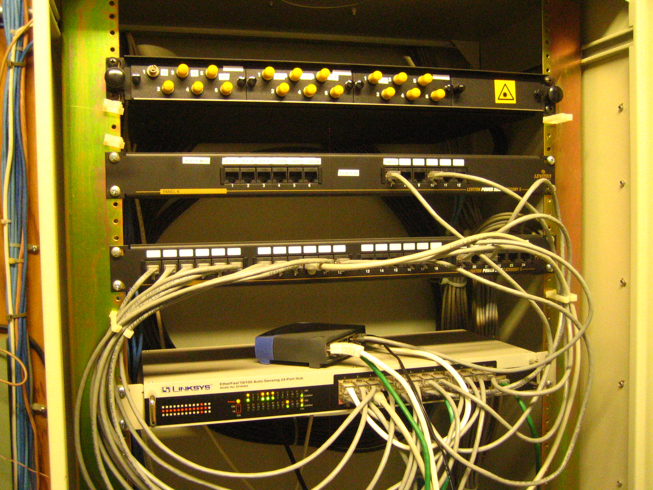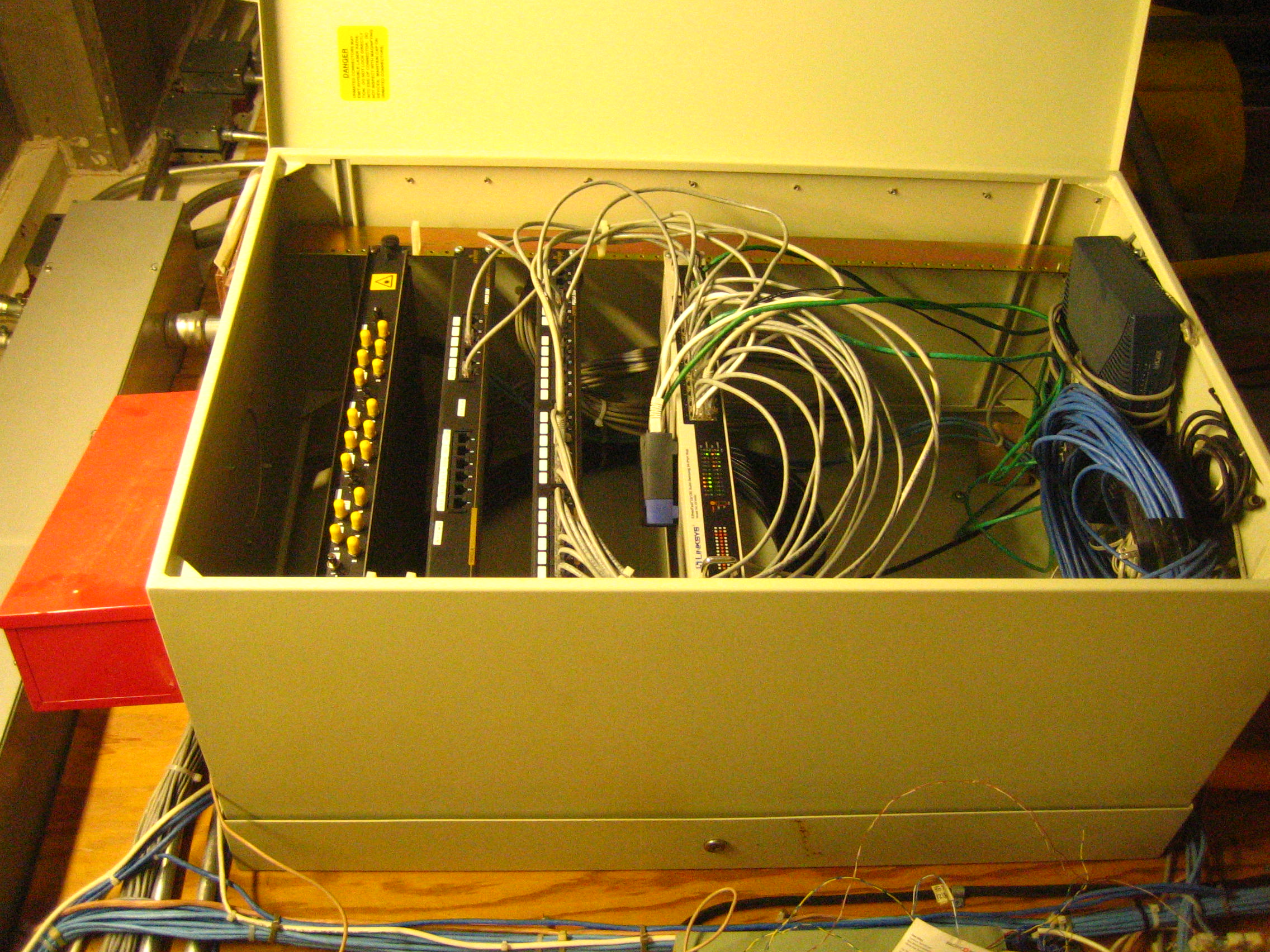 - On 2007-09-14 Tom Haddon went to the management company and took the following pictures of their network area, which we believe overlaps with the network setup at HVLC (their building is immediately behind HVLC):